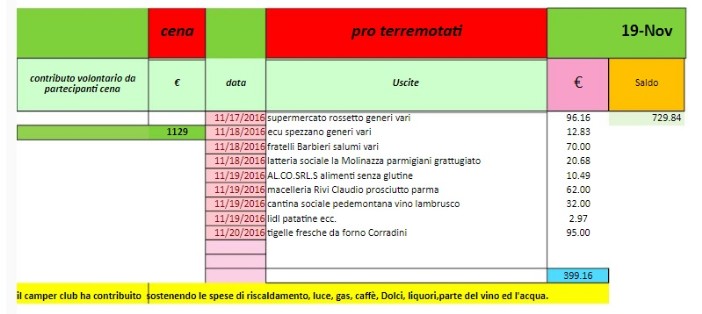 in data 19 Novembre ha organizzato una cena di solidarietà per la raccolta di fondi da destinarsi alle zone terremotate del centro Italia.